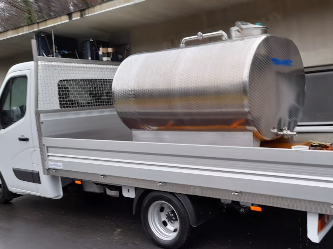 The outside of the milk tank has a ladder so that each manhole can be accessed easily. The tank is insulated and protected with an insulation jacket. The insulation itself has the appropriate density of polyurethane foam. The platform for the milk tank is ready to go and is easily mounted onto the chassis of a transport vehicle.